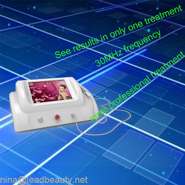 The micro-dots high frequency lightning produces a 30,000,000 Hz ultra high frequency electromagnetic oscillation, with the unique soft silk ( than hair thinner ), at 1/ 100 second time break the hemoglobin, will release the energy transfer to the surface of the skin following removal of lesions, capillaries, and intravascular hemoglobin break make it into small molecules are absorbed by the skin tissue itself, so as to make it reach the disposable permanent eradication of red blood results, each treatment of red blood streak time should not exceed15 minutes, precise digital control system, perfect and concise treatment procedures, simple operation is beneficial to quickly grasp.